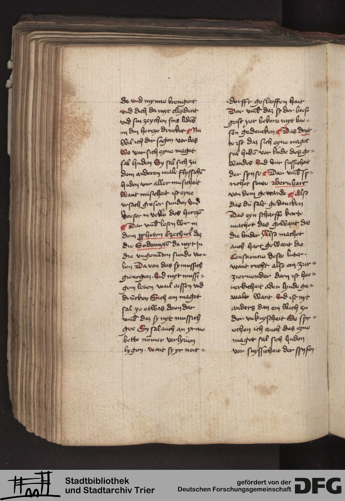 - TextGrid Repository (2017). Stadtbibliothek und Stadtarchiv Trier, 814/1340 4°: Sammelhandschrift. Inhalte. Stadtbibliothek und Stadtarchiv Trier Hs. 814/1340 4°. Dialog über die 10 Gebote. Blatt 202v. Blatt 202v. Virtuelles Skriptorium St. Matthias. Stadtbibliothek und Stadtarchiv Trier. https://hdl.handle.net/11378/0000-000A-04F5-D