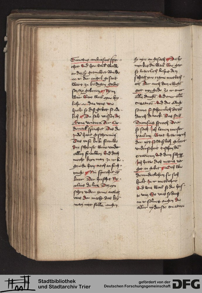 - TextGrid Repository (2017). Stadtbibliothek und Stadtarchiv Trier, 814/1340 4°: Sammelhandschrift. Inhalte. Stadtbibliothek und Stadtarchiv Trier Hs. 814/1340 4°. Dialog über die 10 Gebote. Blatt 208v. Blatt 208v. Virtuelles Skriptorium St. Matthias. Stadtbibliothek und Stadtarchiv Trier. https://hdl.handle.net/11378/0000-000A-050D-3