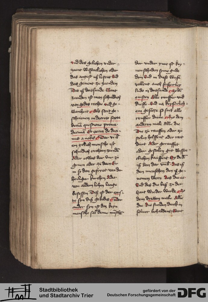 - TextGrid Repository (2017). Stadtbibliothek und Stadtarchiv Trier, 814/1340 4°: Sammelhandschrift. Inhalte. Stadtbibliothek und Stadtarchiv Trier Hs. 814/1340 4°. Dialog über die 10 Gebote. Blatt 214v. Blatt 214v. Virtuelles Skriptorium St. Matthias. Stadtbibliothek und Stadtarchiv Trier. https://hdl.handle.net/11378/0000-000A-0525-7