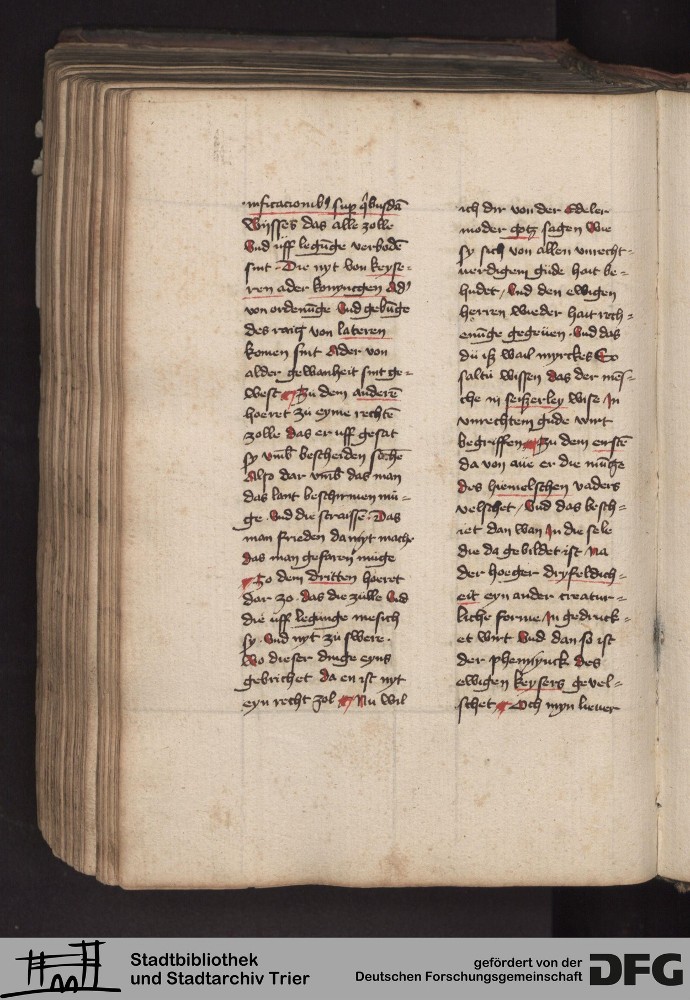 - TextGrid Repository (2017). Stadtbibliothek und Stadtarchiv Trier, 814/1340 4°: Sammelhandschrift. Inhalte. Stadtbibliothek und Stadtarchiv Trier Hs. 814/1340 4°. Dialog über die 10 Gebote. Blatt 218v. Blatt 218v. Virtuelles Skriptorium St. Matthias. Stadtbibliothek und Stadtarchiv Trier. https://hdl.handle.net/11378/0000-000A-0535-5
