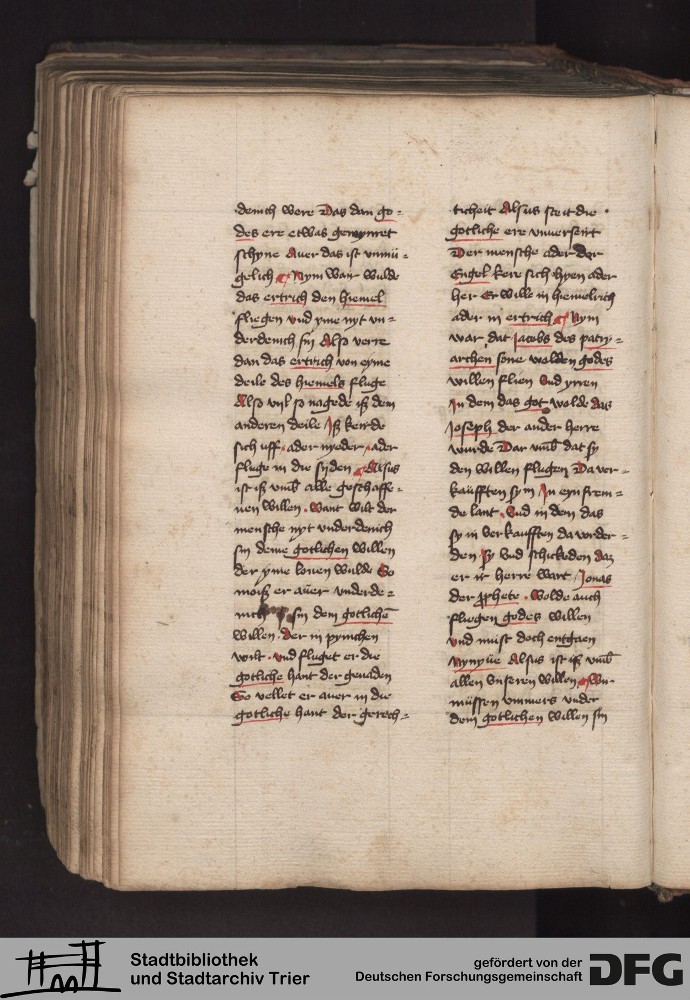 - TextGrid Repository (2017). Stadtbibliothek und Stadtarchiv Trier, 814/1340 4°: Sammelhandschrift. Inhalte. Stadtbibliothek und Stadtarchiv Trier Hs. 814/1340 4°. Dialog über die 10 Gebote. Blatt 232v. Blatt 232v. Virtuelles Skriptorium St. Matthias. Stadtbibliothek und Stadtarchiv Trier. https://hdl.handle.net/11378/0000-000A-056D-7