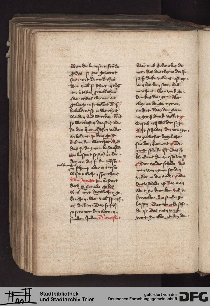 - TextGrid Repository (2017). Stadtbibliothek und Stadtarchiv Trier, 814/1340 4°: Sammelhandschrift. Inhalte. Stadtbibliothek und Stadtarchiv Trier Hs. 814/1340 4°. Dialog über die 10 Gebote. Blatt 236v. Blatt 236v. Virtuelles Skriptorium St. Matthias. Stadtbibliothek und Stadtarchiv Trier. https://hdl.handle.net/11378/0000-000A-057D-5