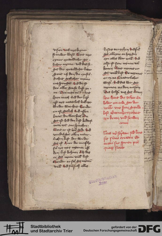 - TextGrid Repository (2017). Stadtbibliothek und Stadtarchiv Trier, 814/1340 4°: Sammelhandschrift. Inhalte. Stadtbibliothek und Stadtarchiv Trier Hs. 814/1340 4°. Dialog über die 10 Gebote. Blatt 254v. Blatt 254v. Virtuelles Skriptorium St. Matthias. Stadtbibliothek und Stadtarchiv Trier. https://hdl.handle.net/11378/0000-000A-05C5-2
