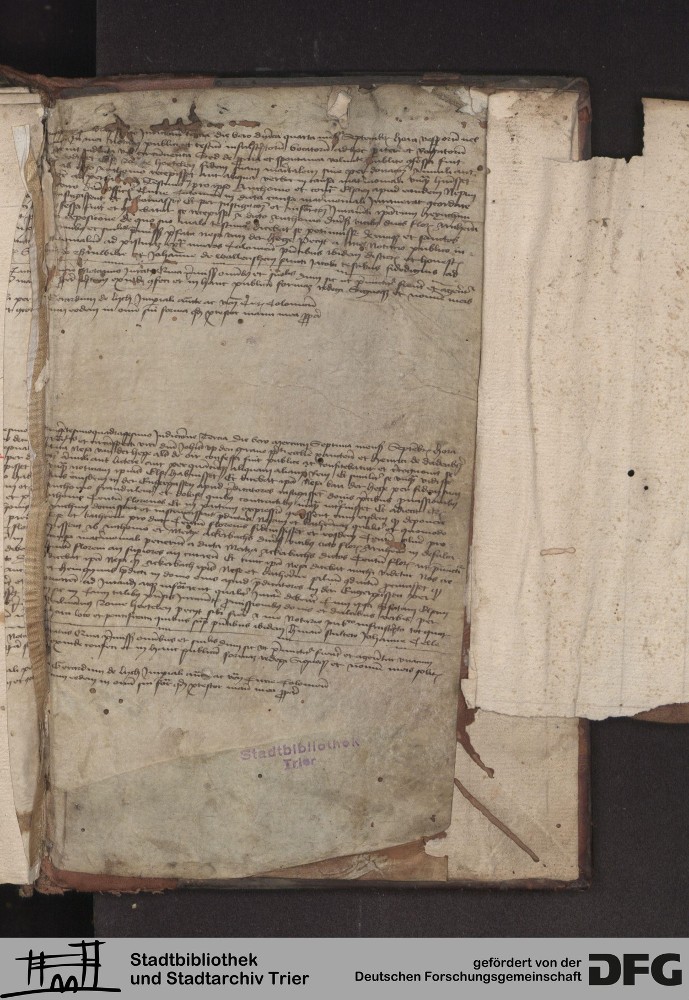 - TextGrid Repository (2017). Stadtbibliothek und Stadtarchiv Trier, 814/1340 4°: Sammelhandschrift. Inhalte. Stadtbibliothek und Stadtarchiv Trier Hs. 814/1340 4°. Rückdeckel mit Fragment. Rückdeckel. Rückdeckel. Virtuelles Skriptorium St. Matthias. Stadtbibliothek und Stadtarchiv Trier. https://hdl.handle.net/11378/0000-000A-05C9-E
