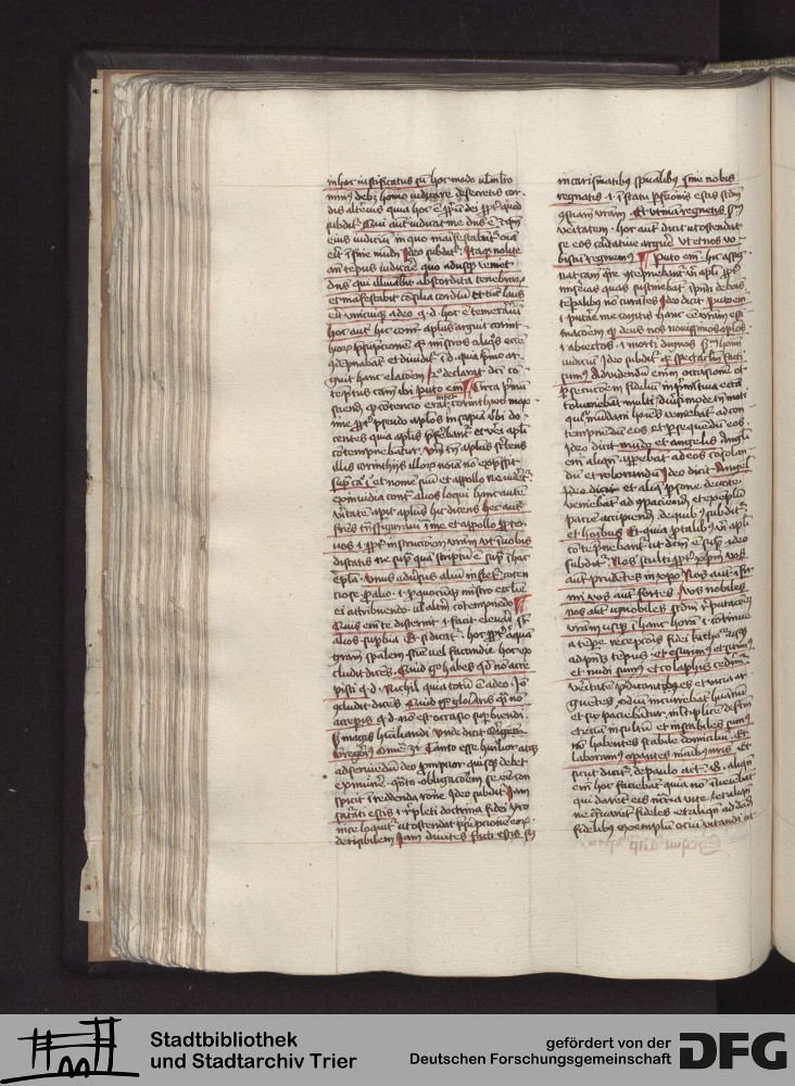 - TextGrid Repository (2017). Stadtbibliothek und Stadtarchiv Trier, Hs. 1060/1293 4°: Sammelhandschrift. Inhalte. Stadtbibliothek und Stadtarchiv Trier Hs 1060/1293 4°. Postilla litteralis super epistulas s. Pauli. Blatt 127v. Blatt 127v. Virtuelles Skriptorium St. Matthias. Stadtbibliothek und Stadtarchiv Trier. https://hdl.handle.net/11378/0000-000A-4CD2-4