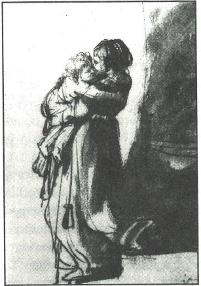 Rembrandt_Saskia, Rumbartus eine Treppe heruntertragend. KMG. Georg-August-Universität Göttingen Stiftung Öffentlichen Rechts: Niedersächsische Staats- und Universitätsbibliothek Göttingen.